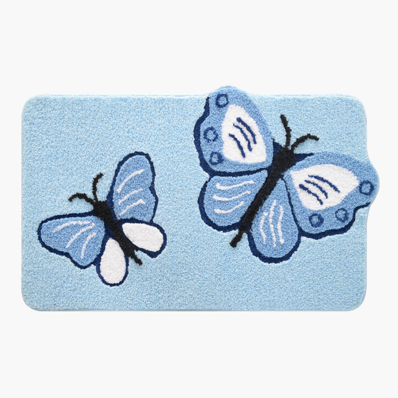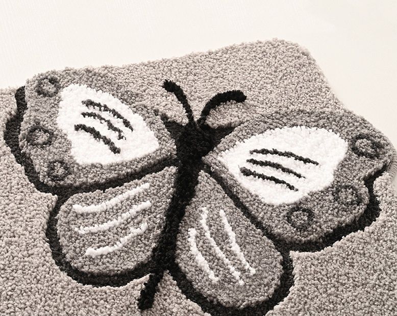 可愛らしい蝶々の図案が印象的な絨毯仕様のバスマットです。