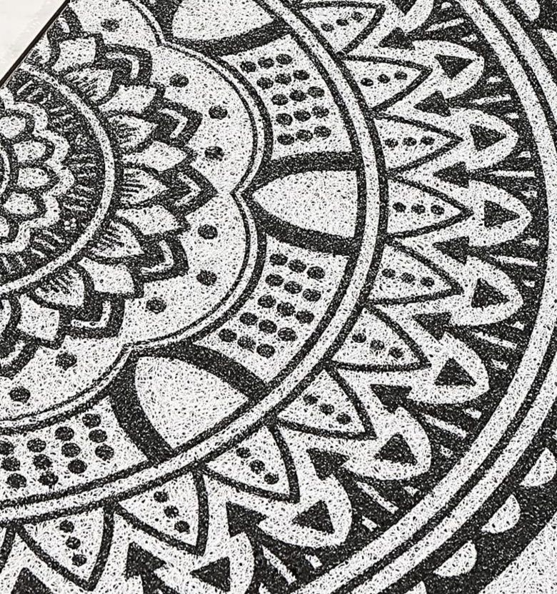 美しい半円形のデザインが特徴的な玄関マットです。